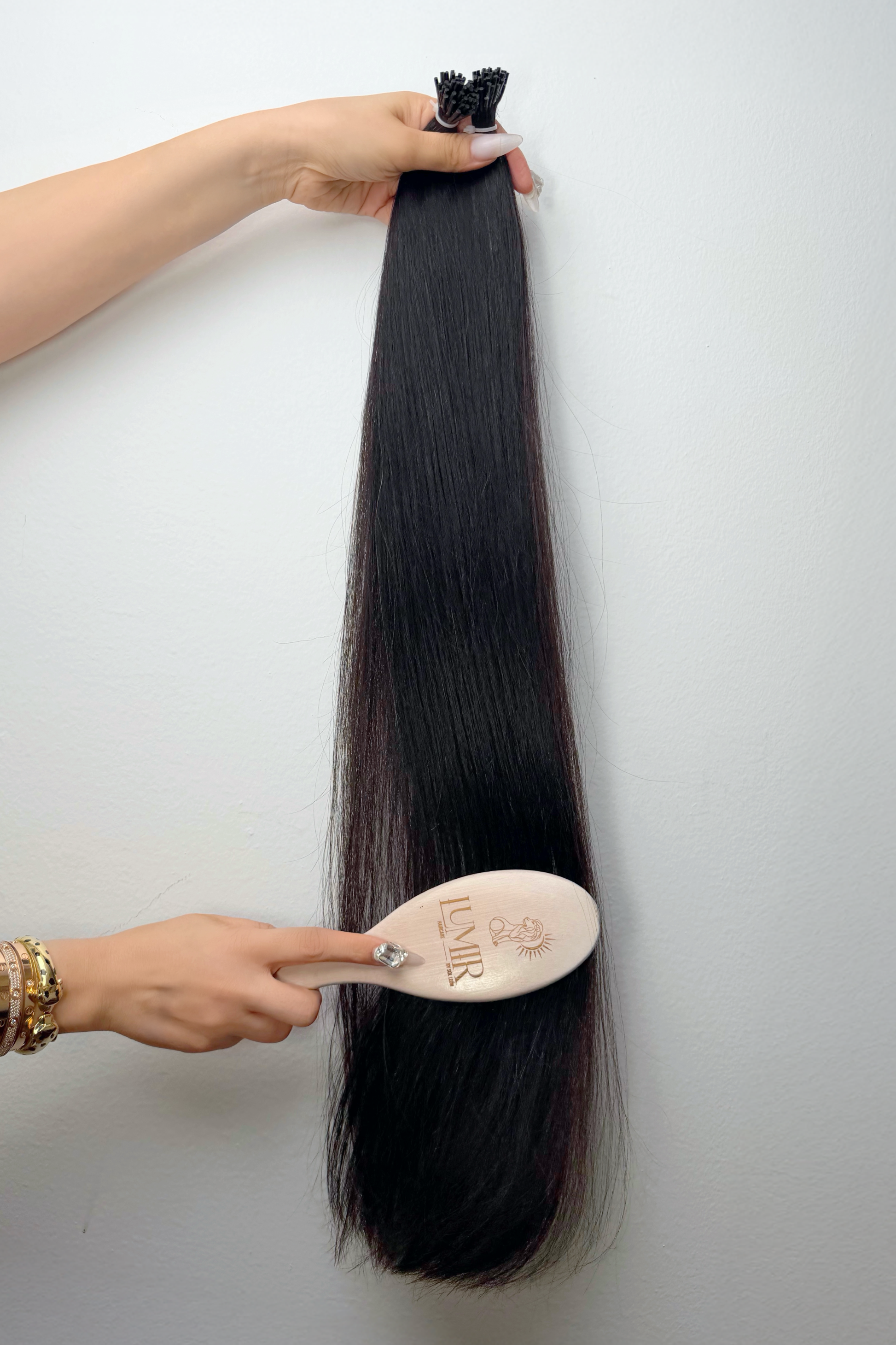 El encapsulado con queratina premium ofrece una unión invisible, segura y duradera, conservando la pureza del cabello sin pérdida al cepillar ni tras su aplicación.