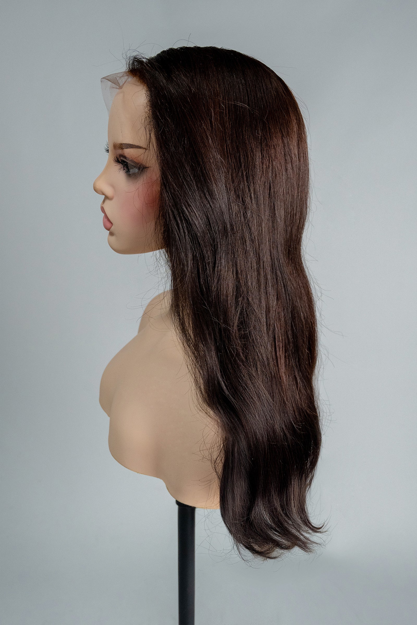 Nuestra peluca color chocolate rojizo combina la profundidad del castaño chocolate con sutiles matices rojizos, creando un tono cálido, sofisticado y lleno de carácter. Elaborada con cabello 100% natural, ofrece una textura suave, movimiento realista y un acabado impecable que realza cualquier estilo.