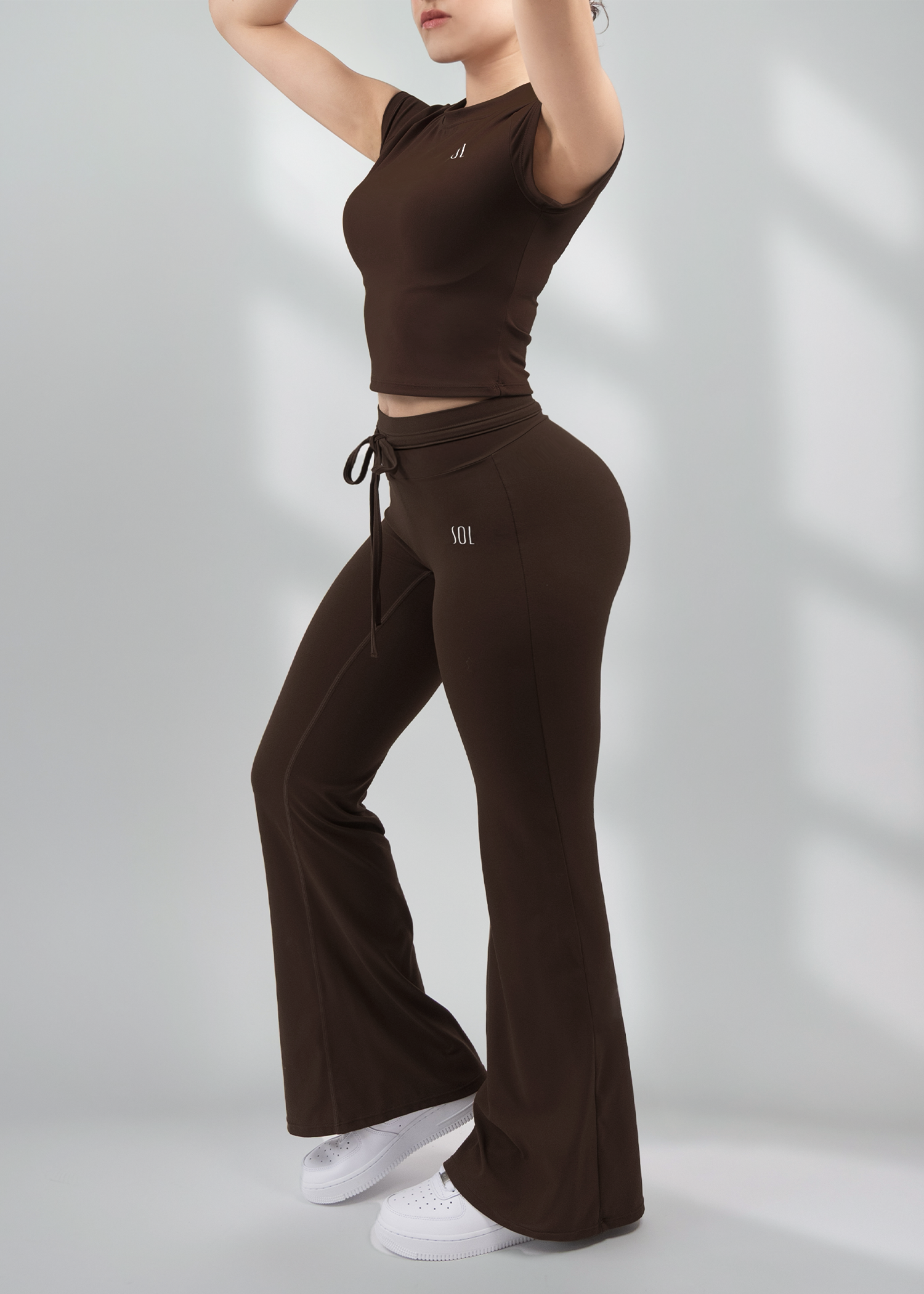 El corte favorecedor del pantalón estiliza tus piernas, mientras que el top ceñido aporta un toque minimalista y moderno que funciona tanto para tu entrenamiento como para tu día a día. Ya sea que lo uses para entrenar, salir o simplemente sentirte bien contigo misma, este look sporty-chic eleva cualquier momento.