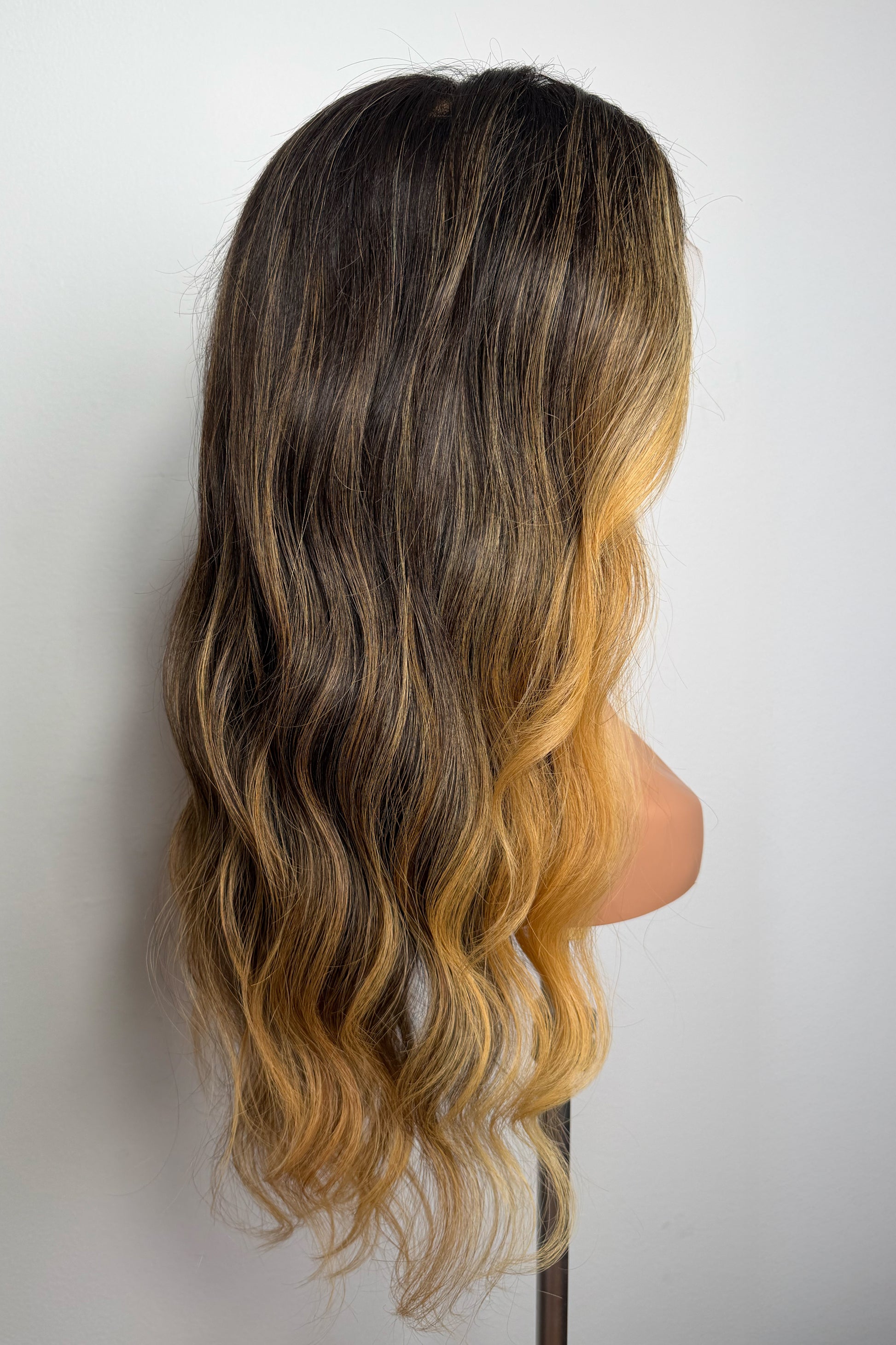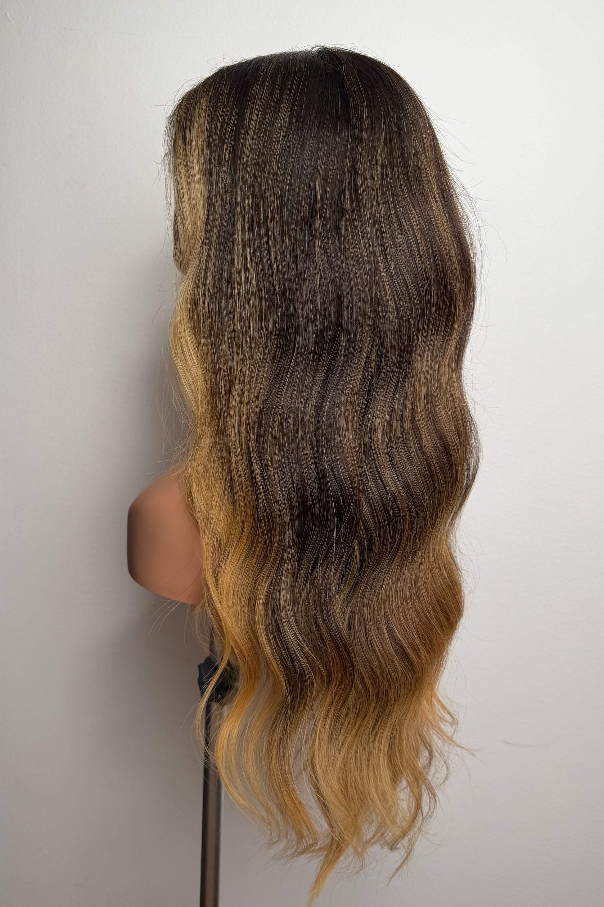 Tiffany es la definición de sutileza luminosa. Su tonalidad morena iluminada revela destellos dorados que acarician la profundidad del color, creando un juego de luz envolvente y elegante. Confeccionada con cabello 100% natural, su caída fluida y natural acompaña cada movimiento con gracia silenciosa.